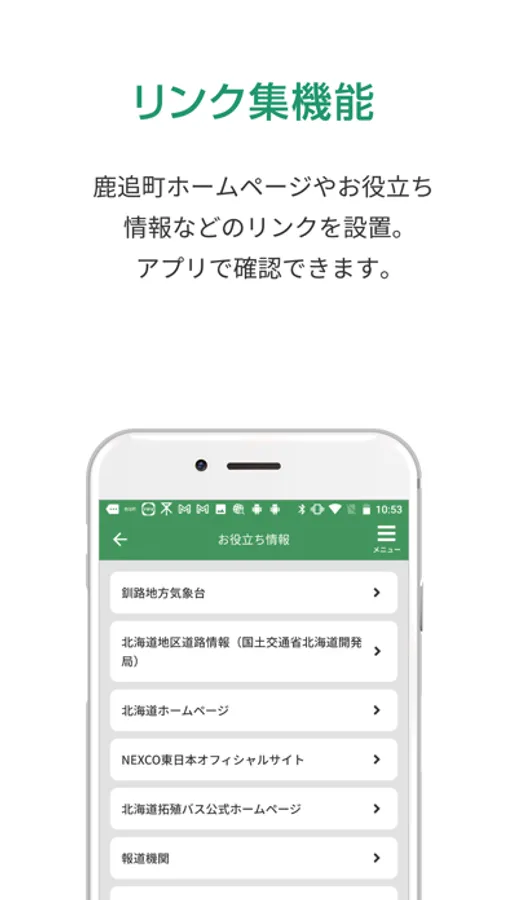 鹿追町に関するリンク集からホームページや災害時の安否確認等に直接アクセスし必要な情報を手軽に入手できます。