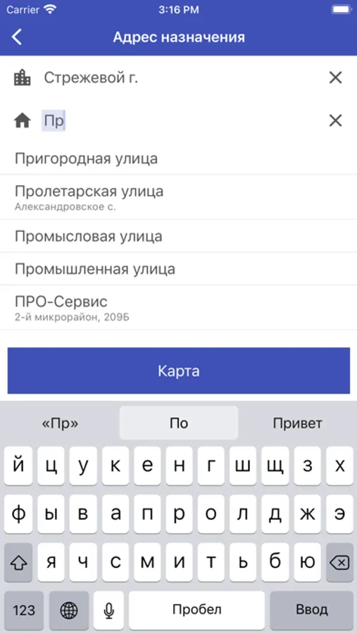 Поездка от адреса до адреса