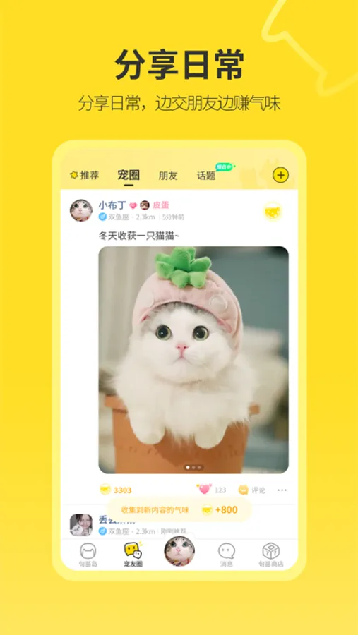 你可以在宠圈浏览养宠好友、附近宠友更新的萌宠日常动态,体验丝滑云撸宠。