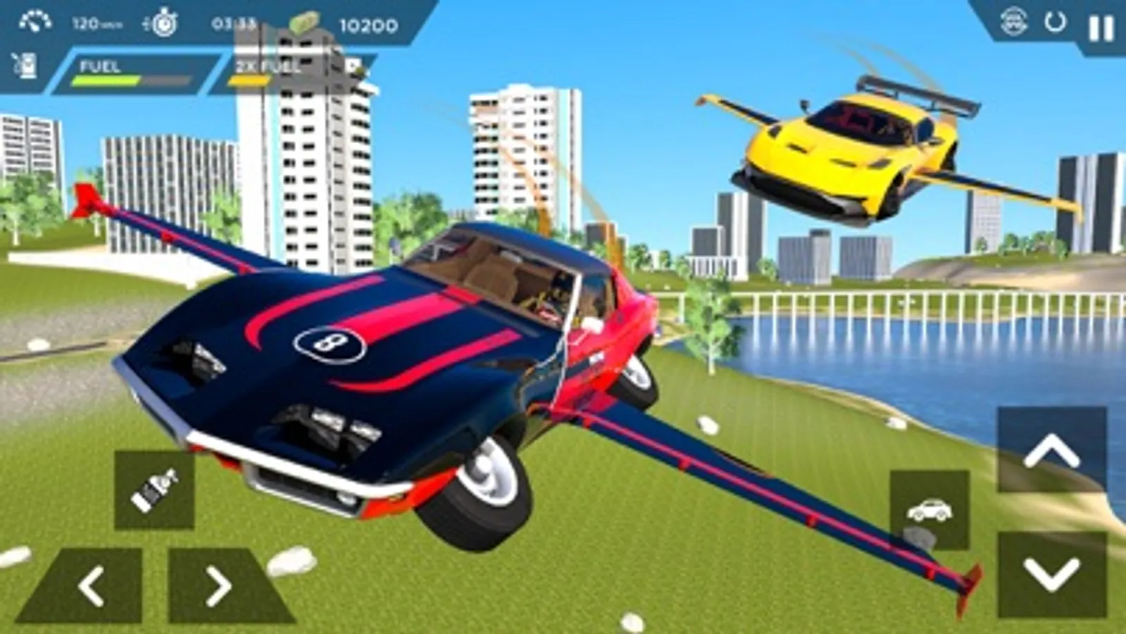 Ready to drive the modern flying racing cars? Drive fast down city streets or fly high in the sky above the city like an airplane? Experience now the latest in driving and flying simulations with one of the best modern car flying games!
