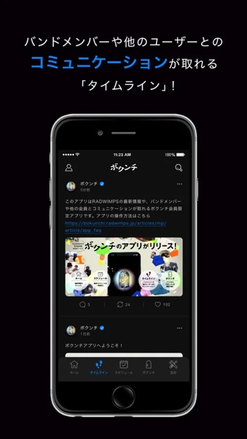 ・バンドメンバーや他の会員とコミュニケーションが取れるタイムライン機能