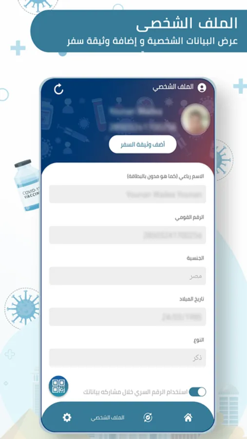 يمكن للأعضاء المسجلين في التطبيق إضافة أكثر من وثيقة سفر إلى ملفهم الشخصي واستخدام تلك البيانات لمشاركتها مع حالة التطعيم أثناء السفر من وإلى خارج مصر.