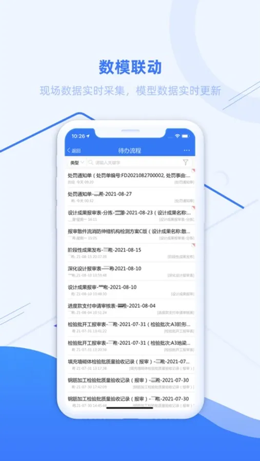标准化的设计、造价、质量、进度、安全、资金管理等模块数据模板、工序库、流程库,现场通过手机实时填报,生产数据提交快捷方便!多人提报汇总的工程管理数据更好地辅助项目管理与决策!流程数据汇总形成的监控驾驶舱,更真实、更全方位提升项目管理效率。