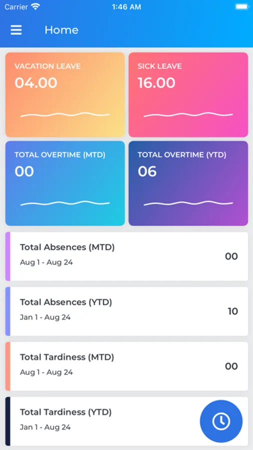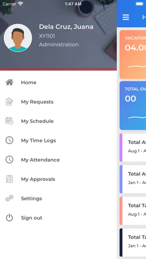 - Employees can view their sick leave balance, vacation leave balance, overtime hours, total absences, and instances of tardiness on their personal dashboard.