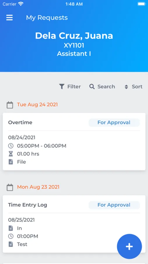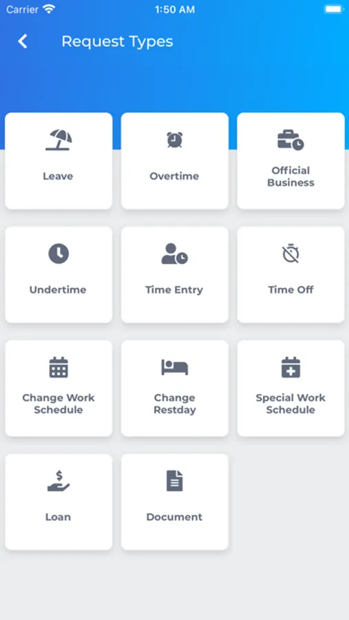 - Users can submit requests such as filing for leave, filing for overtime, requesting a change in schedule, or requesting for a loan or an official document.