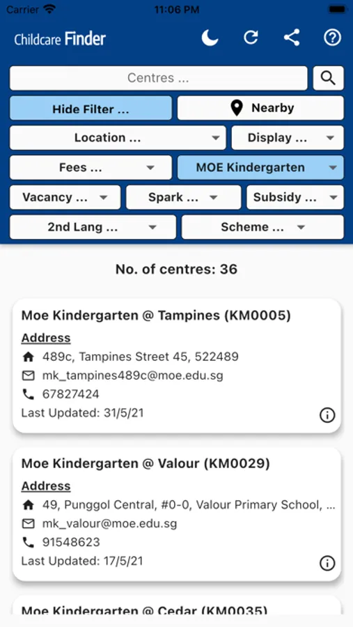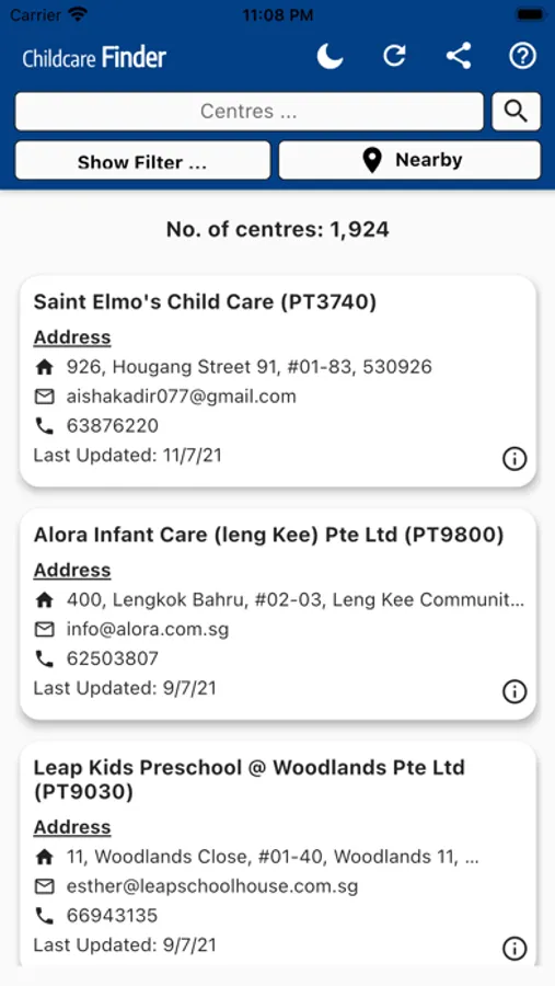 Search, sort and filter the childcare centres and pre-schools in Singapore or in your area.