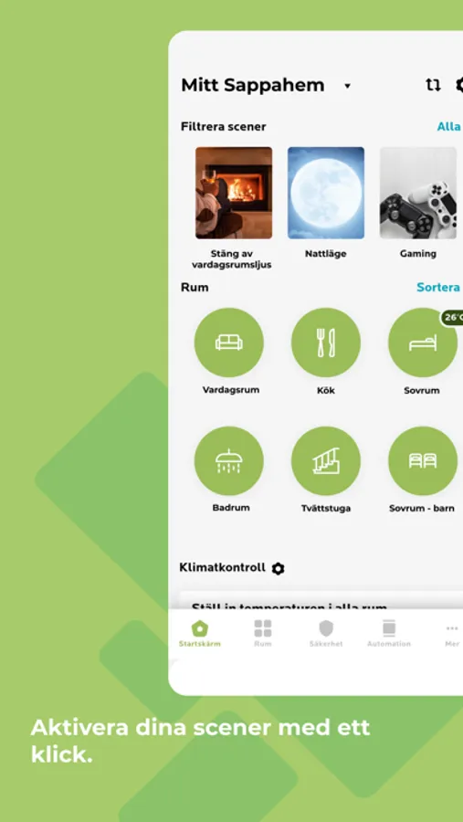 Så gott som alla funktioner i hemmet kan göras smarta, men du måste inte börja med allt på en gång. Du behöver inte heller vara ingenjör för att lyckas med ditt nya smarta hem. Alla smarta produkter styrs av din gateway och den styr du i sin tur med appen Sappa Smarta Hem. Smidigt va?