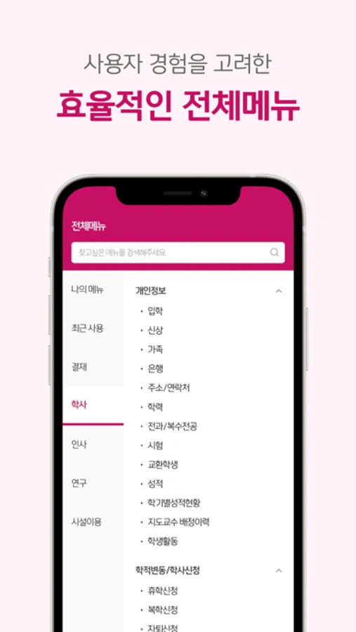 - 학사, 인사, 연구, 시설