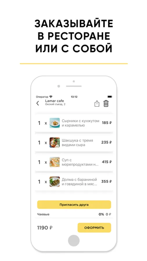 Заказывайте любимые блюда с доставкой или самовывозом, пользуйтесь сверхбыстрым сервисом в кафе и получайте кэшбэк от каждого заказа.
