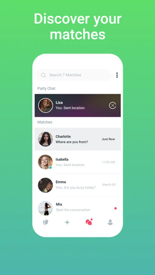 Find your match in real-time random chat (Party Chat), where you can chat with new people and match with them after chatting and get to know each other better.