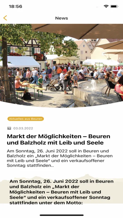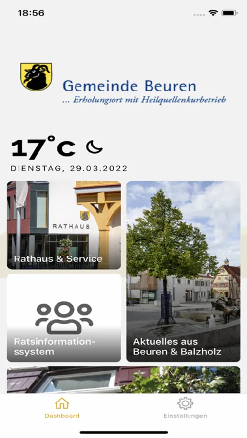 Mit dieser App erhalten Sie einen schnellen und einfachen Zugriff auf aktuelle Meldungen der Gemeinde Beuren . Darüber hinaus können Sie sich über Veranstaltungen und andere Termine informieren und diese direkt in Ihren eigenen Kalender übernehmen. Informationen aus dem Rathaus erhalten Sie mittels Push-Nachrichten, deren Empfang Sie über die Auswahl einzelner Kategorien selbst steuern können. Bleiben Sie stets up to date – mit Ihrer Beuren-App.