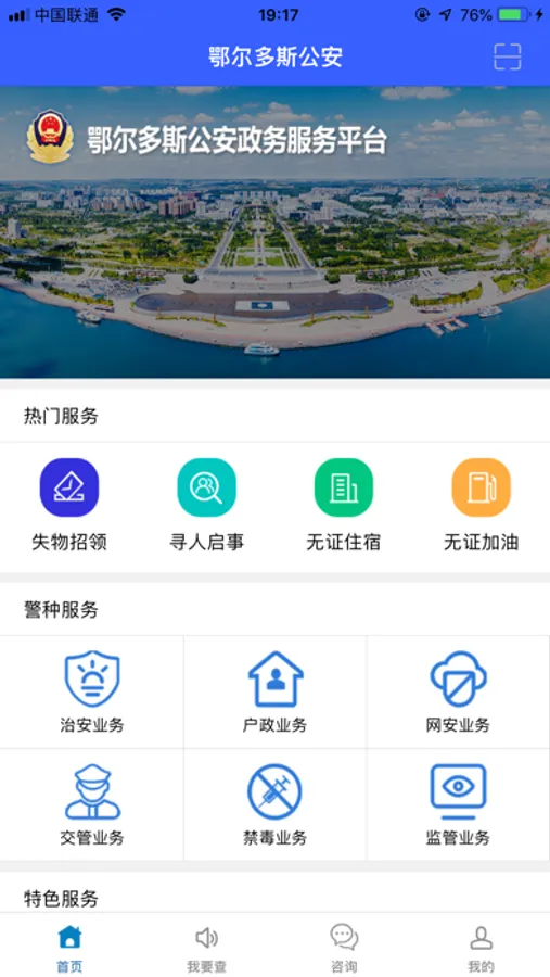 鄂尔多斯公安“互联网+政务服务”平台以“统一入口、统一事项、统一流程、统一管理”为基本建设原则,在有效融合数据流、业务流、管理流的基础上,汇聚服务事项,为群众提供便捷的办事服务,另外还提供了常用的便民查询服务,如:无证加油、无证住宿、驾驶证记分查询、机动车违法查询等。
