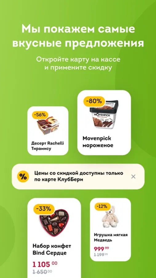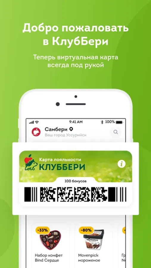 • ваш виртуальный помощник: покажите штрих-код из приложения на кассе для получения скидок, начисления или списания бонусов