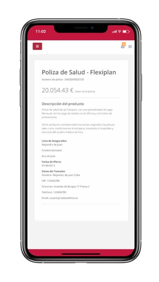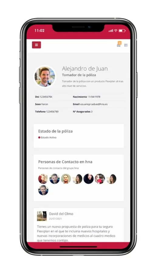Aplicación de acceso a la web del Portal de hna para consultar las pólizas contratadas y sus estados, así como otros avisos de la aplicación