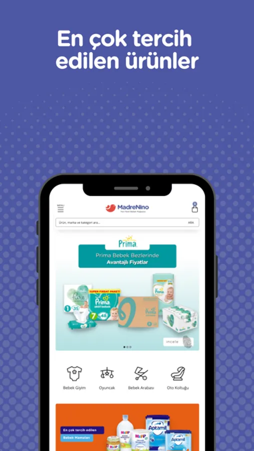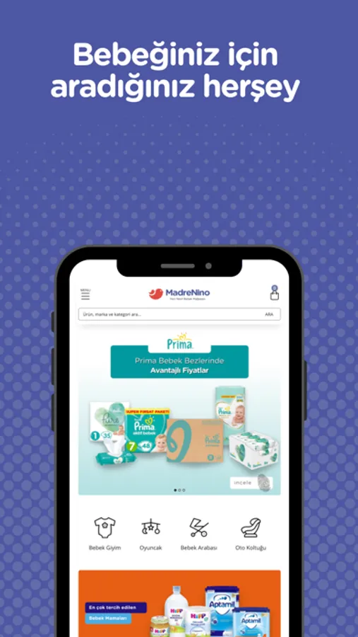Bebeğinizin tüm ihtiyaçlarını karşılayabileceğiniz yeni nesil bebek mağazası MadreNino uygulamasında;