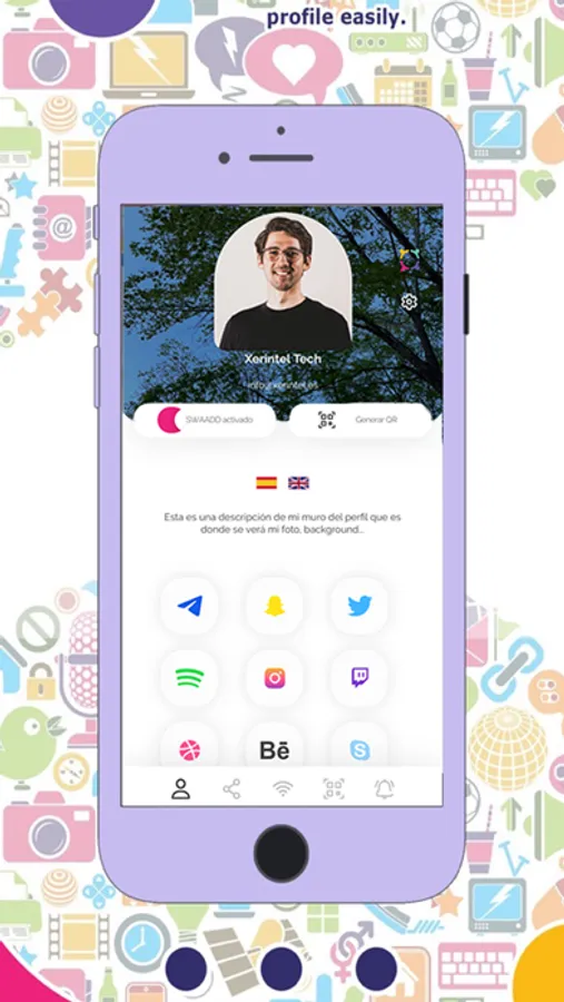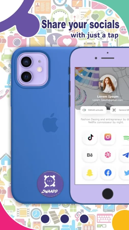 SWAADD is the next generation business card. Our smart products allow you to instantly and easily share your contact information, social media, files, videos, music, Wi-Fi connection, restaurant menu, website, money transfer via app and more, with just one touch. The best part is that the other person does not need an application or SWAADD to receive your information. The SWAADD application allows you to customize a personal or business profile, so that you can connect with your customers and other people. The SWAADD app allows you to easily access your SWAADD profile and choose what you share with your SWAADD. You can customize your SWAADD profile however you want. Stick one of our SWAADD on the back of your phone or anywhere else and use our app to configure the information stored on your SWAADD. Our app allows you to program your: INSTAGRAM, TIKTOK, SNAPCHAT, PHONE NUMBER, WHATSAPP, TWITTER, FACEBOOK, YOUTUBE, SPOTIFY, SOUNDCLOUD, APPLE MUSIC, TWITCH, WEBSITE, VENMO, CASHAPP, PAYPAL, LINKEDIN, EMAIL, MAPS ADDRESS AND MORE.