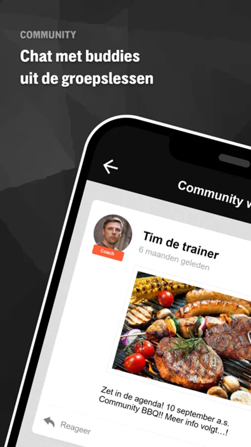 - Houd je trainingprogressies bij en volg je trainingbuddies.