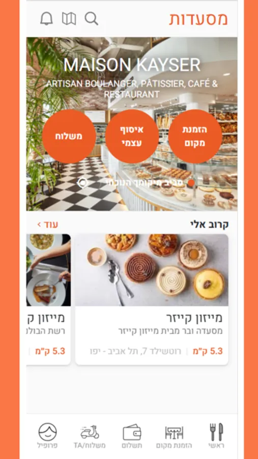 האפליקיה של מייזון קייזר - הזמנת משלוח, הזמנת מקום ותשלום מהיר.