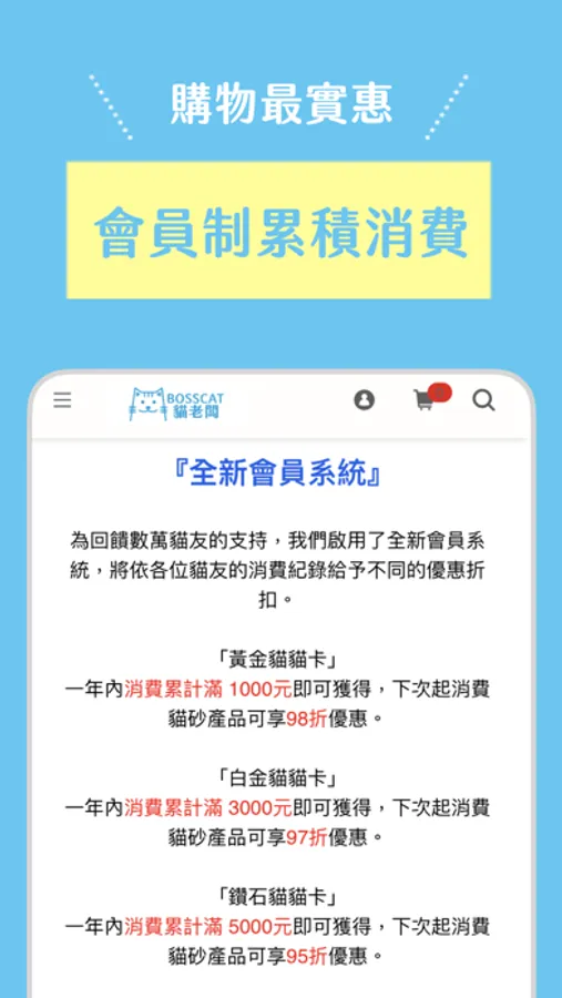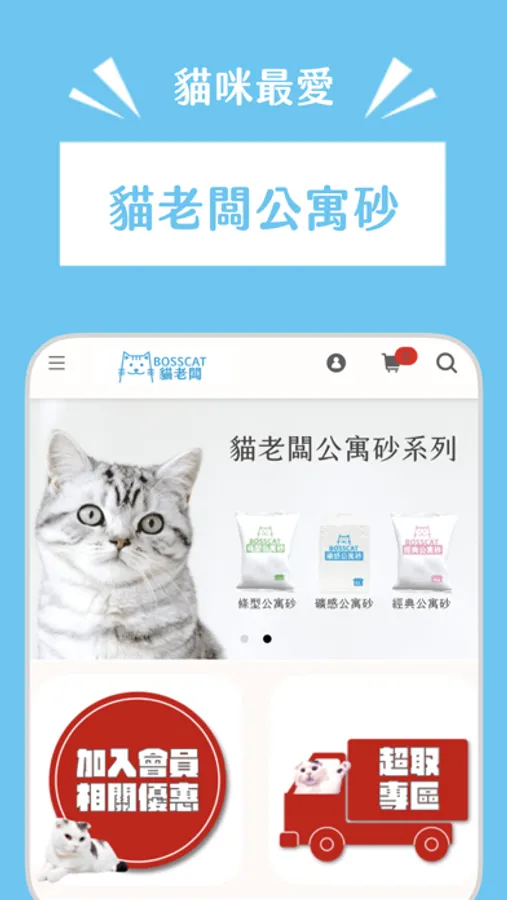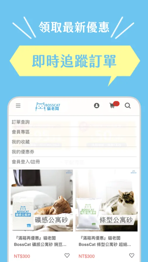 貓老闆 BossCat 貓咪用品專賣店。隨時掌握您的訂單與最新產品資訊,會員優惠不漏接。