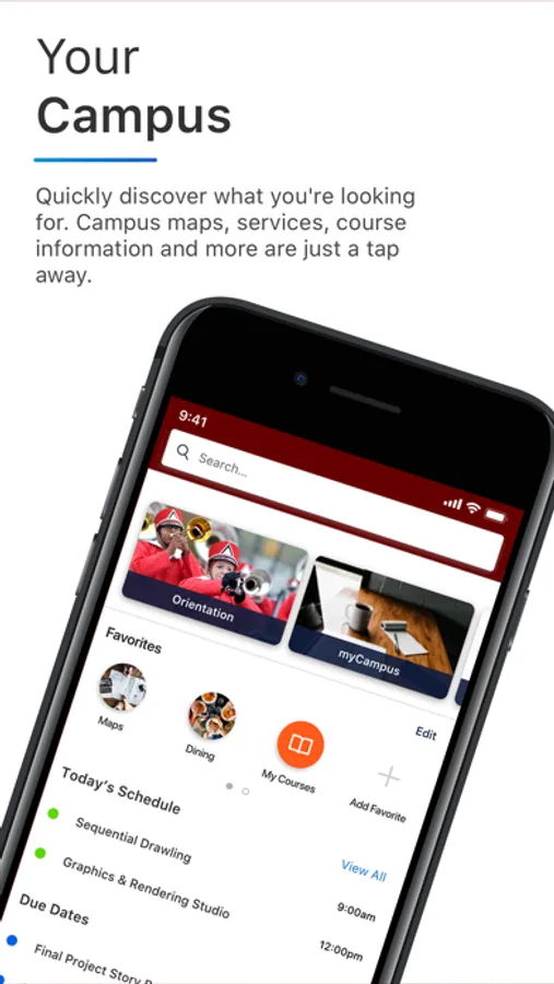 + PUSH NOTIFICATIONS: Receive important campus notifications and emergency alerts