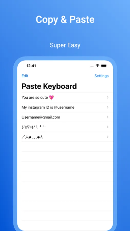 Now you can create and store any notes in Paste Keyboard, and then copy & paste them in any app just with an easy tap in the keyboard. No longer need to remember addresses, phone numbers, card ids, greeting messages or any other large portions of text. Just store them in Paste Keyboard, and paste in emails, chats or comments. Copy any interesting sentences, poems, emojis and emoticons you come across with, and paste them in Paste Keyboard. You can use them anytime, anywhere just with Paste Keyboard installed.