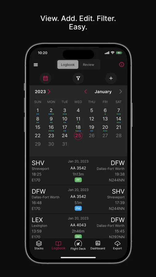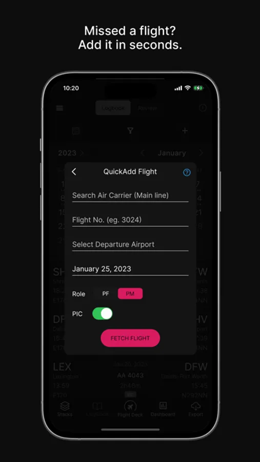 Automation – Using LogByWire technology, this app can detect flights, find relevant flight details and construct a comprehensive flight record with official flight times.