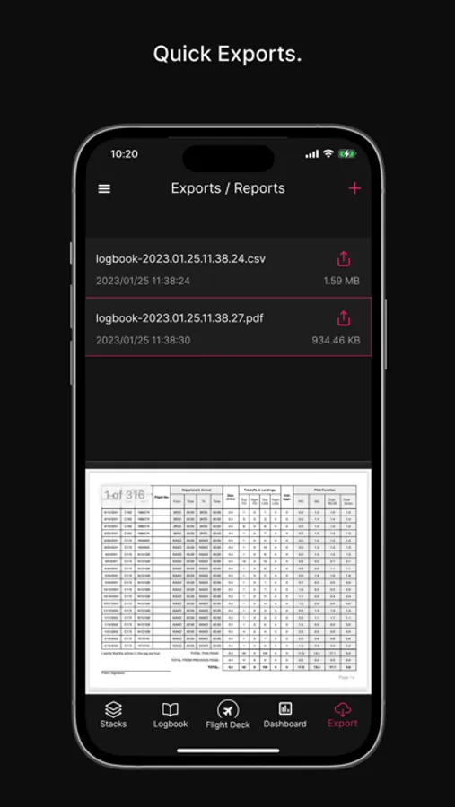 Export – We currently support CSV raw data export. You may also generate a fully formatted FAA and EASA-compliant logbook PDF, ideal for job applications.