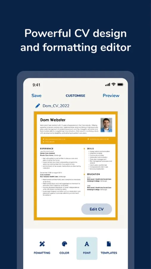 Universal account sync and secure cloud storage on the other hand guarantee that you can access your documents in seconds on every device you own. You will never be without your CV when you need it ever again.