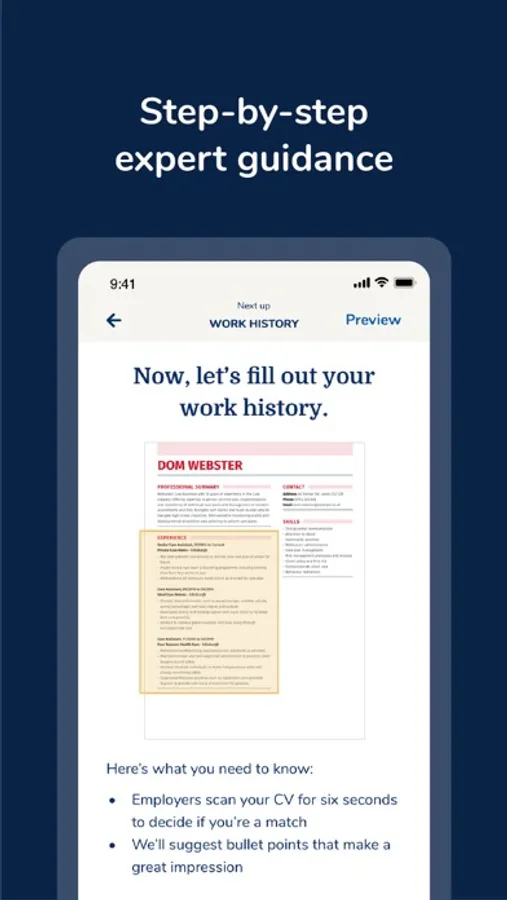 Don’t worry about how to write an effective CV - we have done the research for you. Our CV builder is loaded with expert tips and advice every step of the way. Written by seasoned HR professionals, our guidelines will show you exactly how to highlight your strengths and meet all the requirements of the recruitment process.