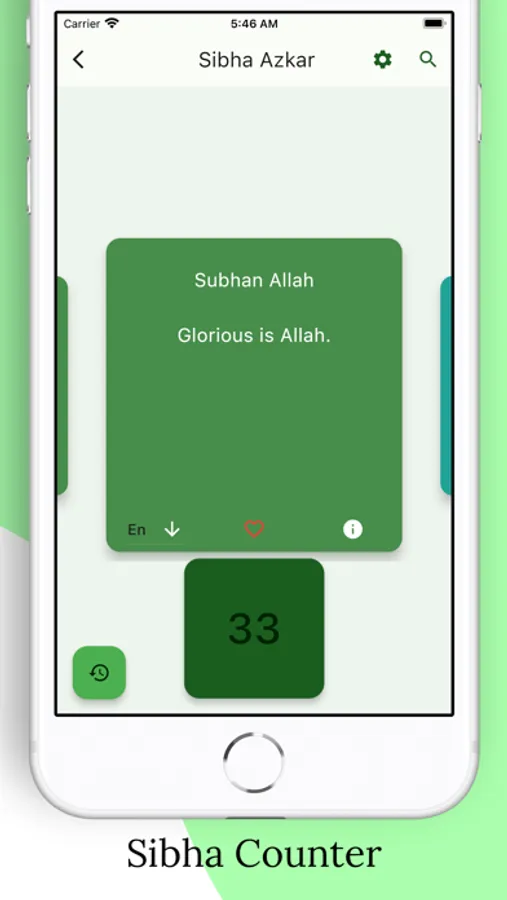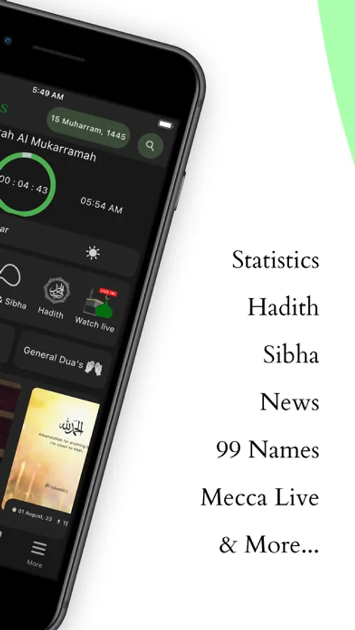 -Use the digital Sibha feature to keep count while reciting Dhikr.