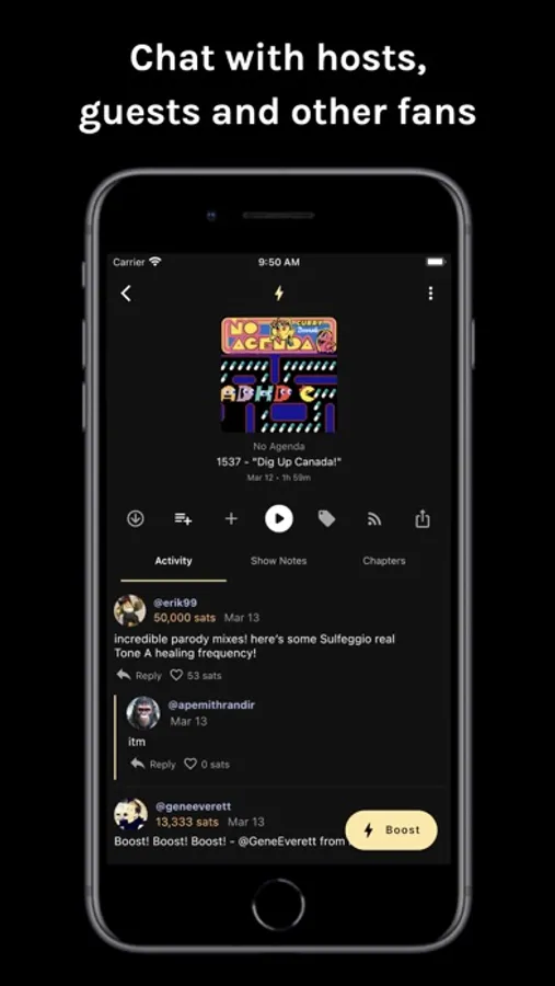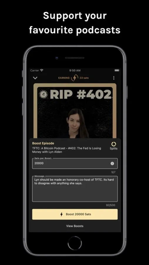 We get incredible value from our favourite podcasts and it’s now easier than ever before for listeners to give some value back. Stream money to your favourite podcasts for every minute you listen or hit Boost to send a payment with a comment. Interact directly with hosts and their guests. See what other listeners have to say and join the conversation. Top up with a bank card and get started in minutes.