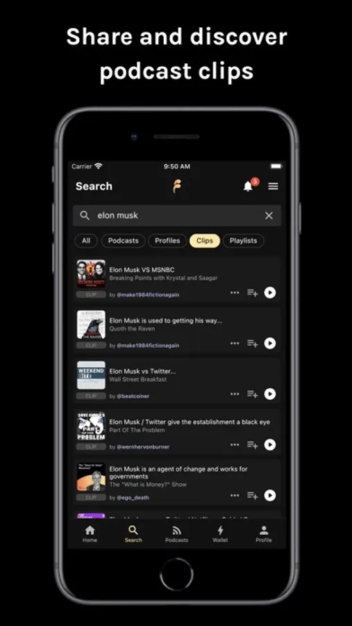 There is so much knowledge buried in podcasts. Finding it and sharing it with others is a valuable service, so when other users like your clips - you get paid. You can also turn your clips into eye-catching videos with subtitles to share them on social media.