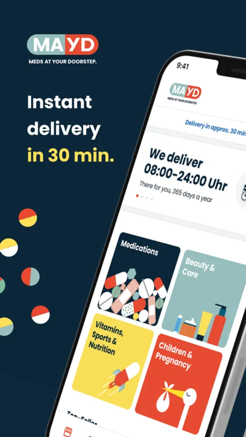 With MAYD you can easily order products from your pharmacy online. The products will be delivered to you within minutes. We want to make healthcare and well-being more accessible and convenient for everyone.
