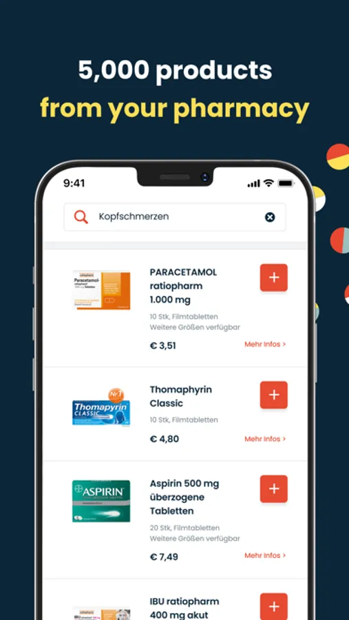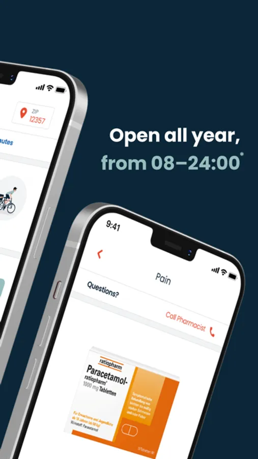 In addition to that, you can redeem your German prescriptions directly in our app to have your prescription medicine delivered within minutes.