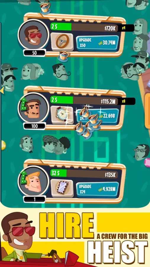 Gather your crew for the ultimate heist. Upgrade your cast of characters to make them better, faster, stronger!