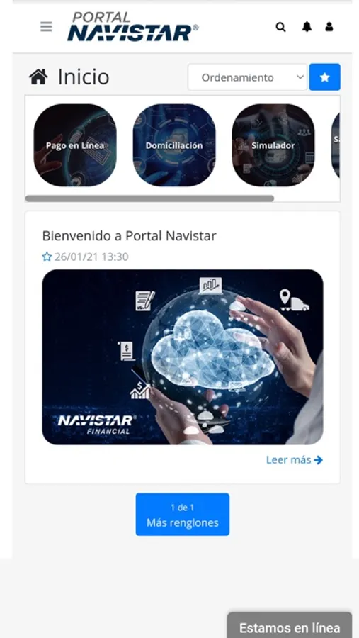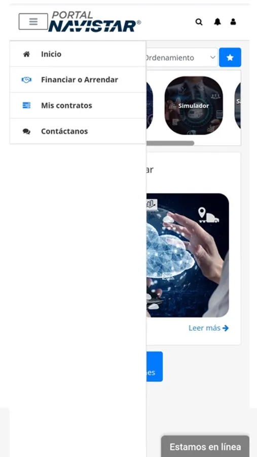En la aplicación de Portal Navistar® podrás realizar simulaciones financieras, conocer programas especiales que ayudarán a impulsar el crecimiento de tu negocio y de forma práctica y segura, tendrás la posibilidad de administrar tus contratos, realizar y domiciliar pagos, así como consultar saldos, movimientos y pólizas de seguro.
