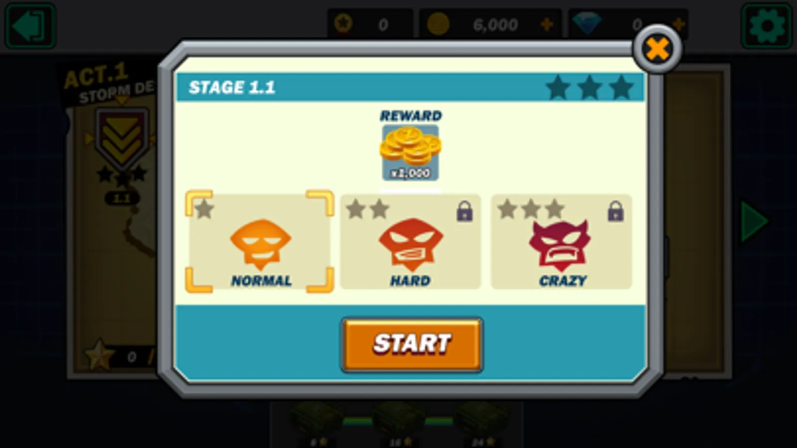 Choose your metal commando, purchase an arsenal of powerful guns and grenades then blow EVERYTHING up.Your metal soldier has armor.Keep up the game and kill the boss.