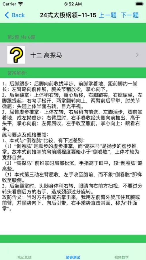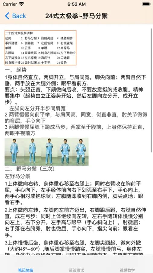 起势 2 野马分鬃 3 白鹤亮翅 4 搂膝拗步