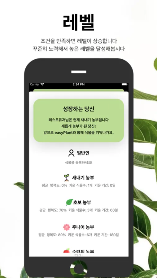 식물을 오래 행복하게 키워서 경험치를 쌓을 수 있어요!
