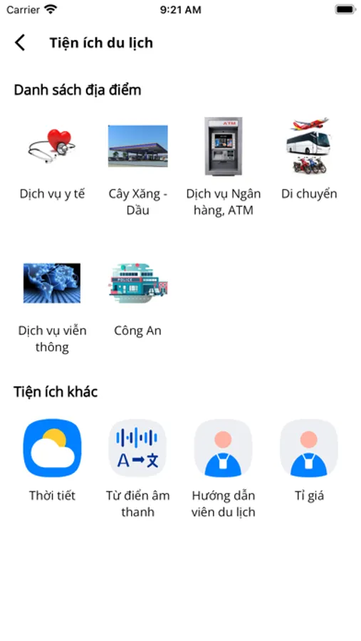 - Các tiện ích tra cứu hữu ích như danh sách địa điểm ATM, cây xăng, cơ sở y tế, toilet công cộng, danh bạ công an...