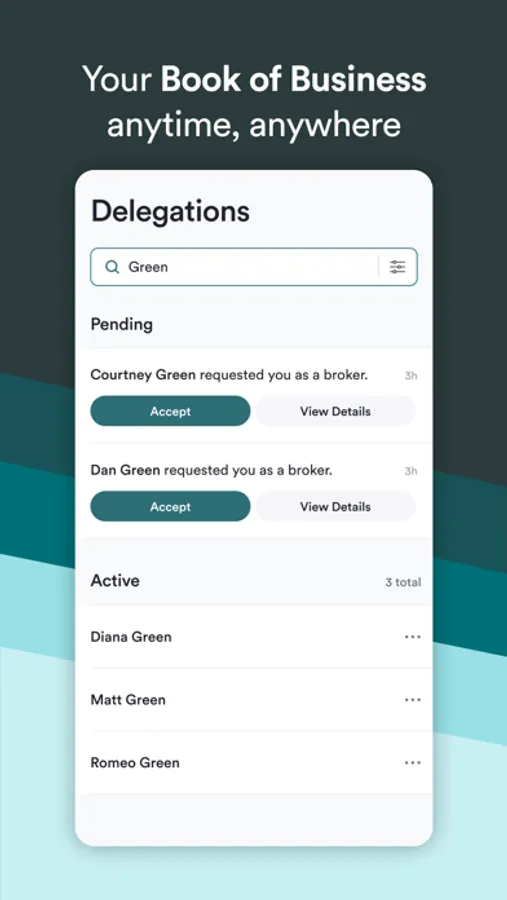 When a new delegation request is received from a client, Connectors receive a notification and can immediately accept the delegation within the app. The delegation screen will always show pending delegations, so a new client request is never missed.