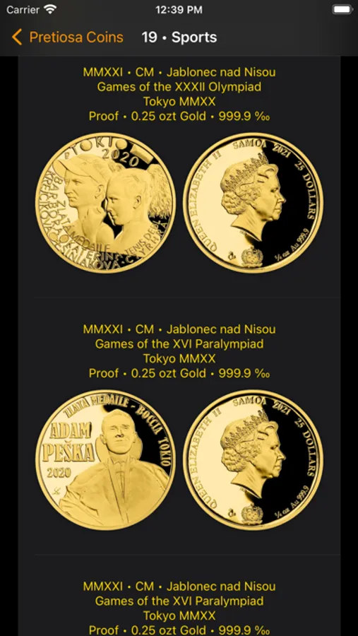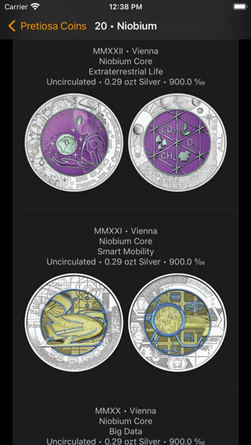 Organize your precious metal coins with Pretiosa confidently.