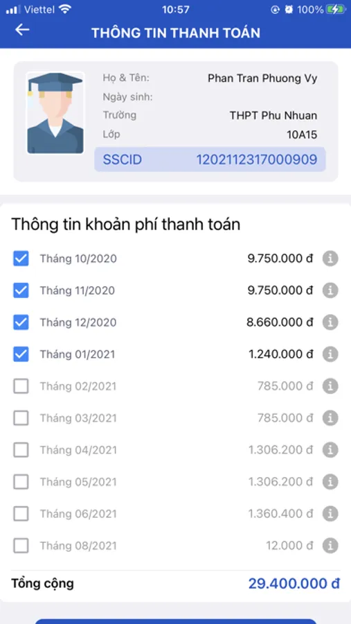 - Thanh toán học phí online tiện lợi qua mã định danh
