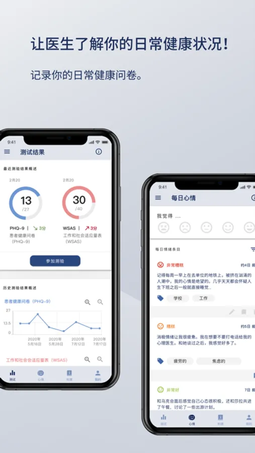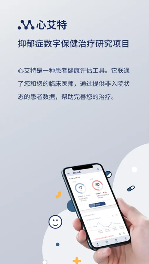 心艾特是服务于患有抑郁症,并在医疗机构问诊的患者。它帮助用户记录日常在医院外的健康状况,向临床医生提供日常健康数据。心艾特还与健康应用程序集成结合,帮助用户描绘更完整的健康画像, 也记录患者的日常心情变化,科普患者的健康知识。