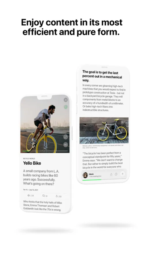 We believe content creators deserve a platform built from the ground up for them. And users an app that serves up content in a beautiful design that saves time and reduces distractions.