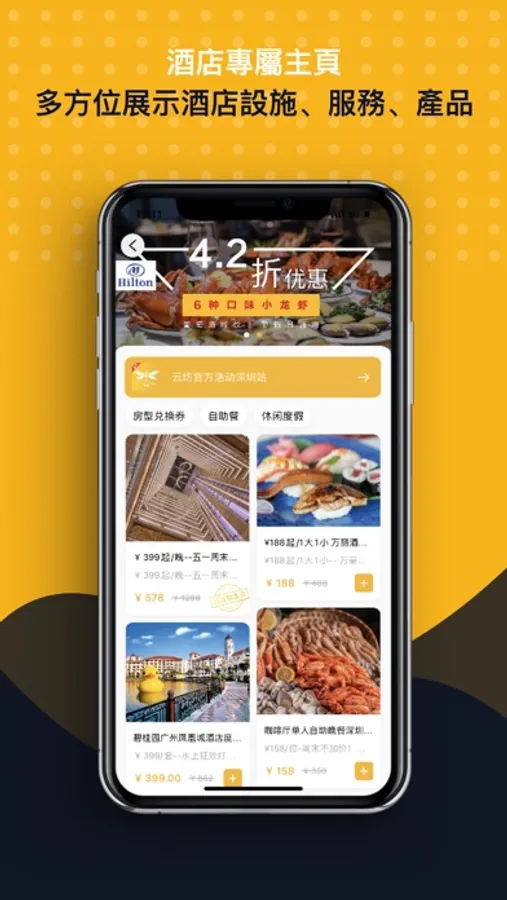 通過雲坊,你可以快速查看香港及大陸星級酒店的自助餐及房劵等商品,並可以實時落單,即時享有非常大的折扣