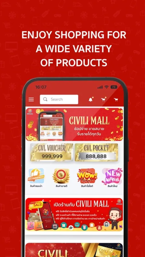 CIVILI MALL collects quality products from Thai entrepreneurs. And many famous brands, many categories, at prices comparable to department stores, ready to be served to your home. with modern systems Easy to use, only at CIVILI MALL!