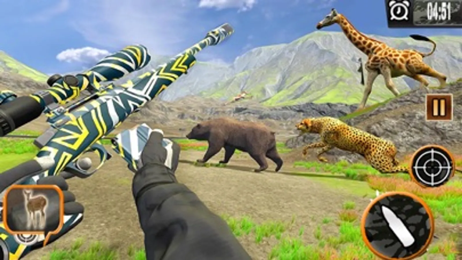- Realistic animated animals to be hunted.