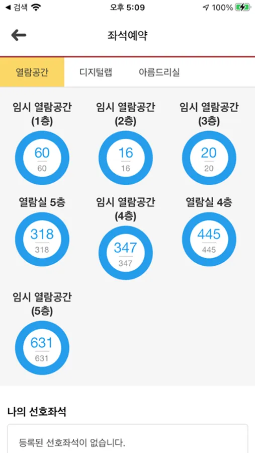 좌석배정, 스터디용 공간을 예약할 수 있습니다.