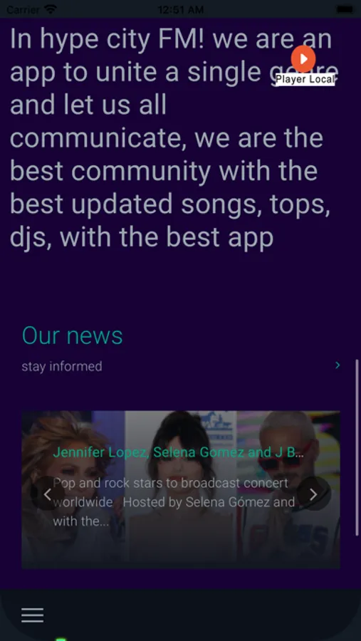 In hype city FM! we are an app to unite a single genre and let us all communicate, we are the best community with the best updated songs, tops, djs, with the best app use our local music player!